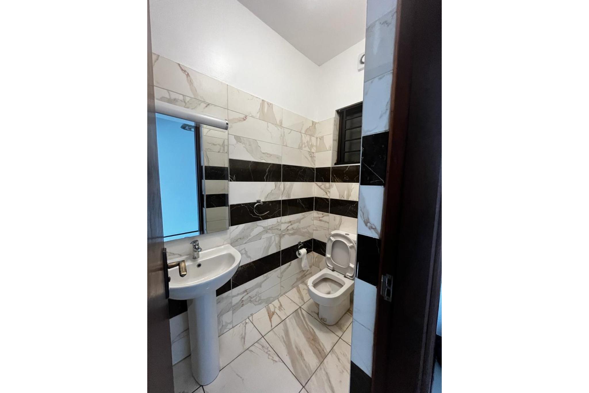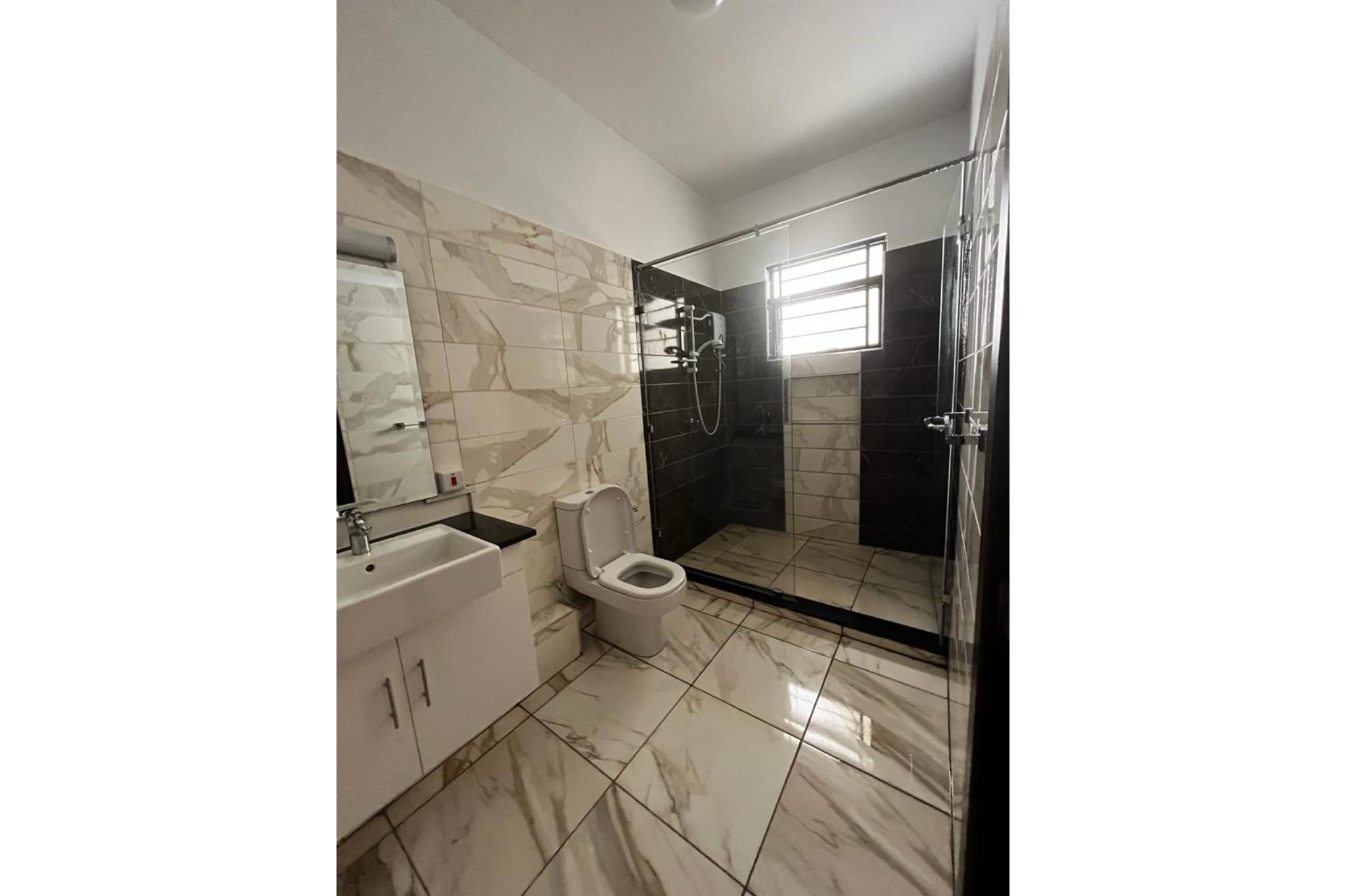A hallway leads to all three bedrooms each designed with large windows for natural light and ventilation. Every bathroom is fitted with an instant shower while the master bedroom features a walk-in closet. The master bathroom is equipped with double sinks, shower and a bathtub.